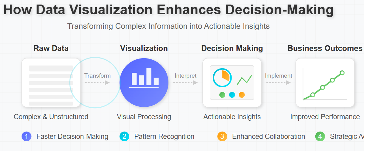 This cognitive advantage explains why well-designed visualizations can dramatically accelerate understanding and decision-making in complex scenarios. In an era where time-to-decision directly impacts business outcomes, visualization has become essential rather than optional.