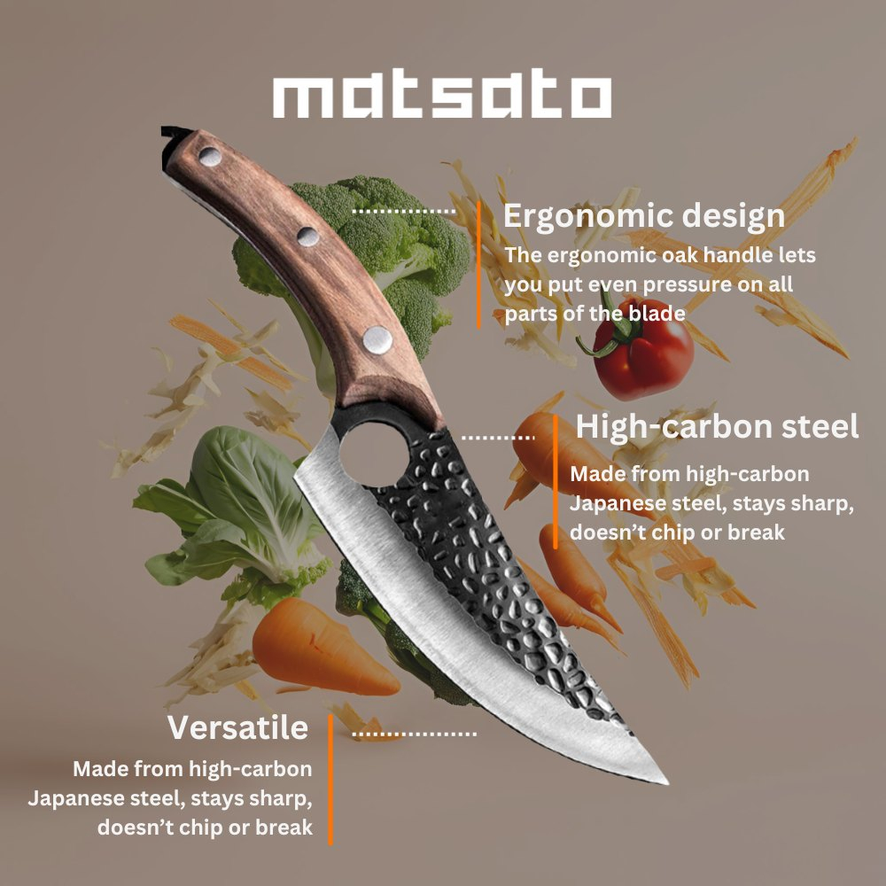 Matsato Knives are premium kitchen knives known for their meticulous design, high-grade materials, and sharp performance. Drawing inspiration from Japanese blade-making traditions, these knives blend ancient craftsmanship with contemporary innovation.