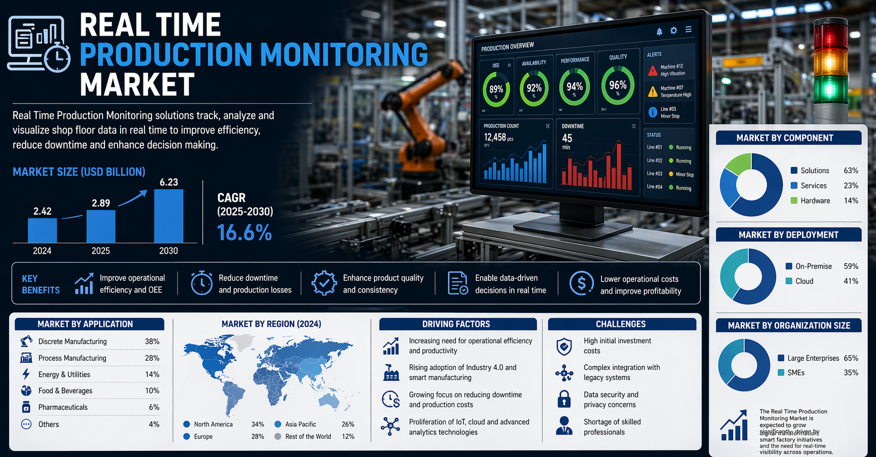 The report also emphasizes the importance of real-time production monitoring in improving quality control, operational efficiency, and regulatory compliance, making it a vital component of Industry 4.0 initiatives.