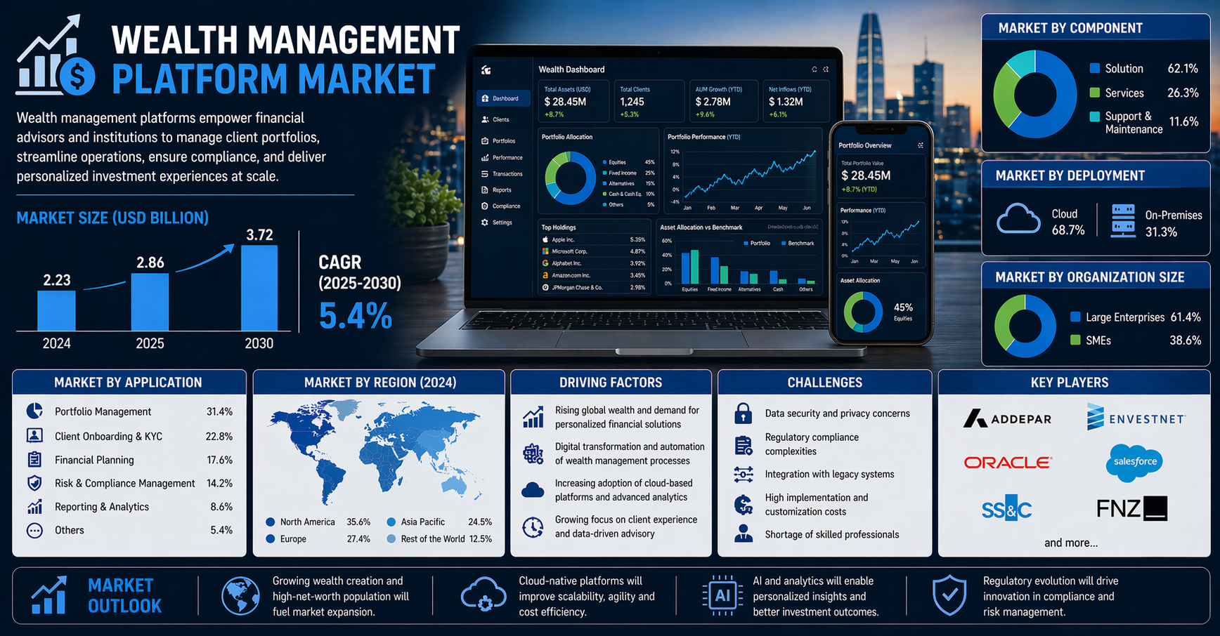 The Wealth Management Platform Market Scope is gaining significant traction as financial institutions increasingly adopt digital platforms to enhance client experience, streamline investment processes, and ensure regulatory compliance. These platforms integrate multiple financial services, including portfolio management, risk analysis, advisory services, and reporting, enabling wealth managers to deliver efficient and personalized solutions. As the financial landscape becomes more complex, the demand for scalable and data-driven wealth management platforms continues to rise.